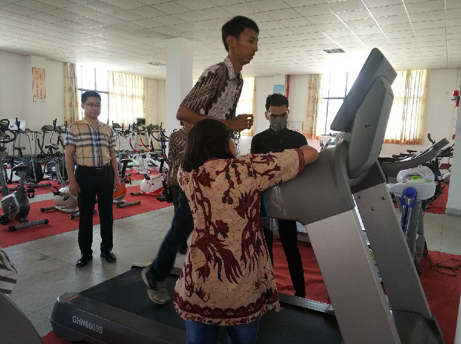 On May 8th, Indonesian guests arrived at Anxi County Jinhuanan Industrial Co., Ltd., led by Chairman Li Jinjiang to visit Anxi County Jinhuanan Industrial Co., Ltd. to understand the production process, experience treadmills and spinning bicycles and other fitness equipment.